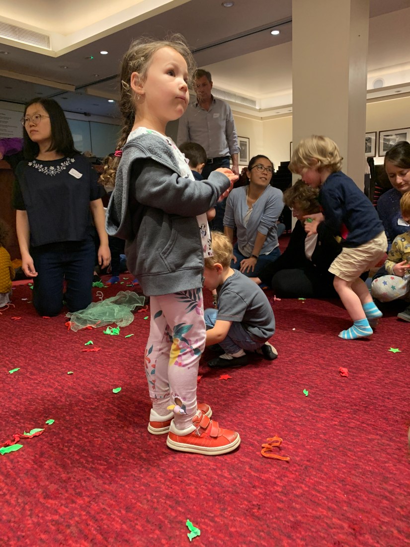 Since C was 8 months or so, we’ve enjoyed attending various music groups. Mini Mozart, the Academy Tots sessions run by the Royal Academy of Music (both right next to Regent’s Park) and the Royal Albert Hall’s Storytelling and Music Sessions fit the bill for a long time, but recently I’ve felt that C has ‘outgrown’ those groups – the age range was just too broad (trending to too young) and the classes didn’t hold her interest well. So we were both very pleased to discover the Wigmore Hall Chamber Tots.